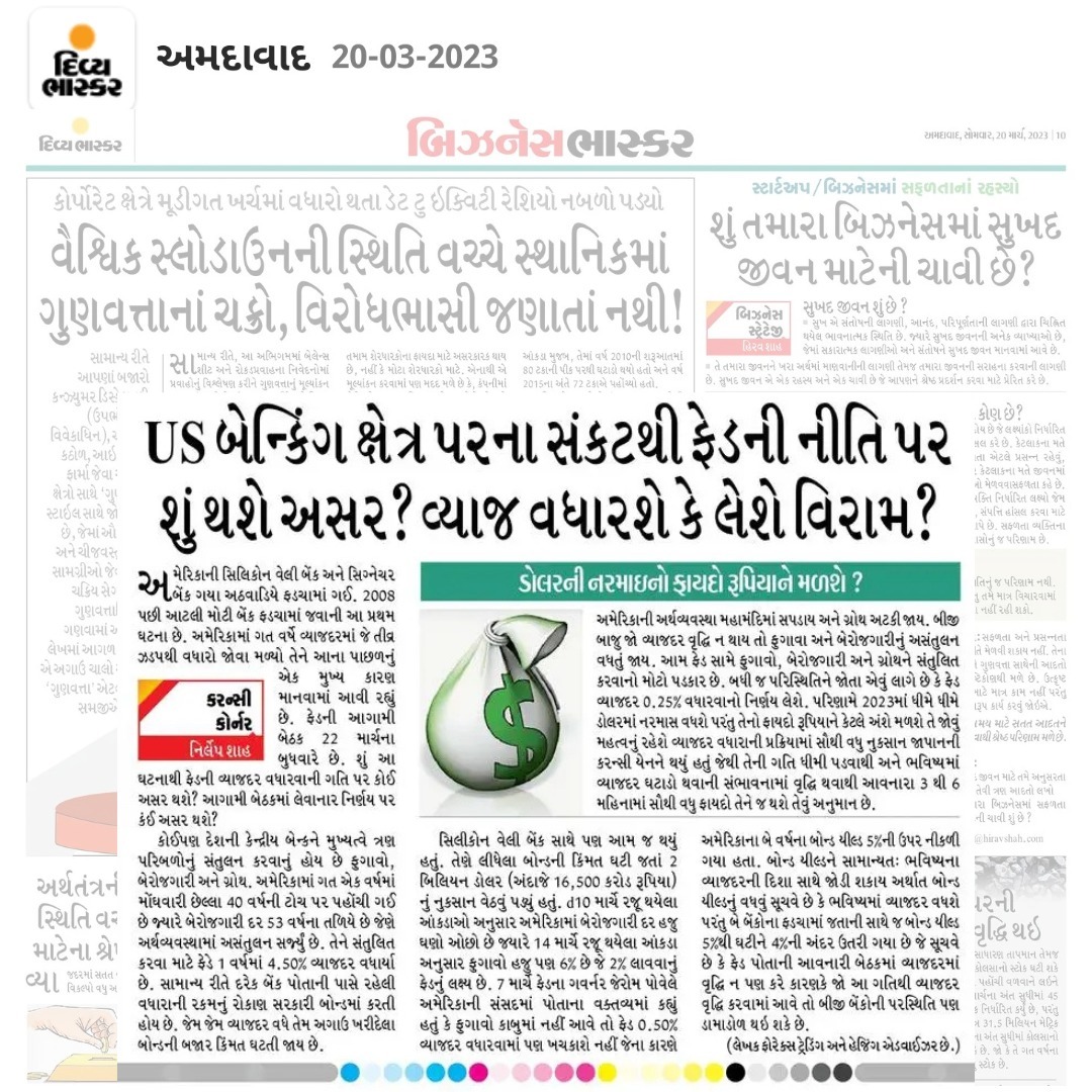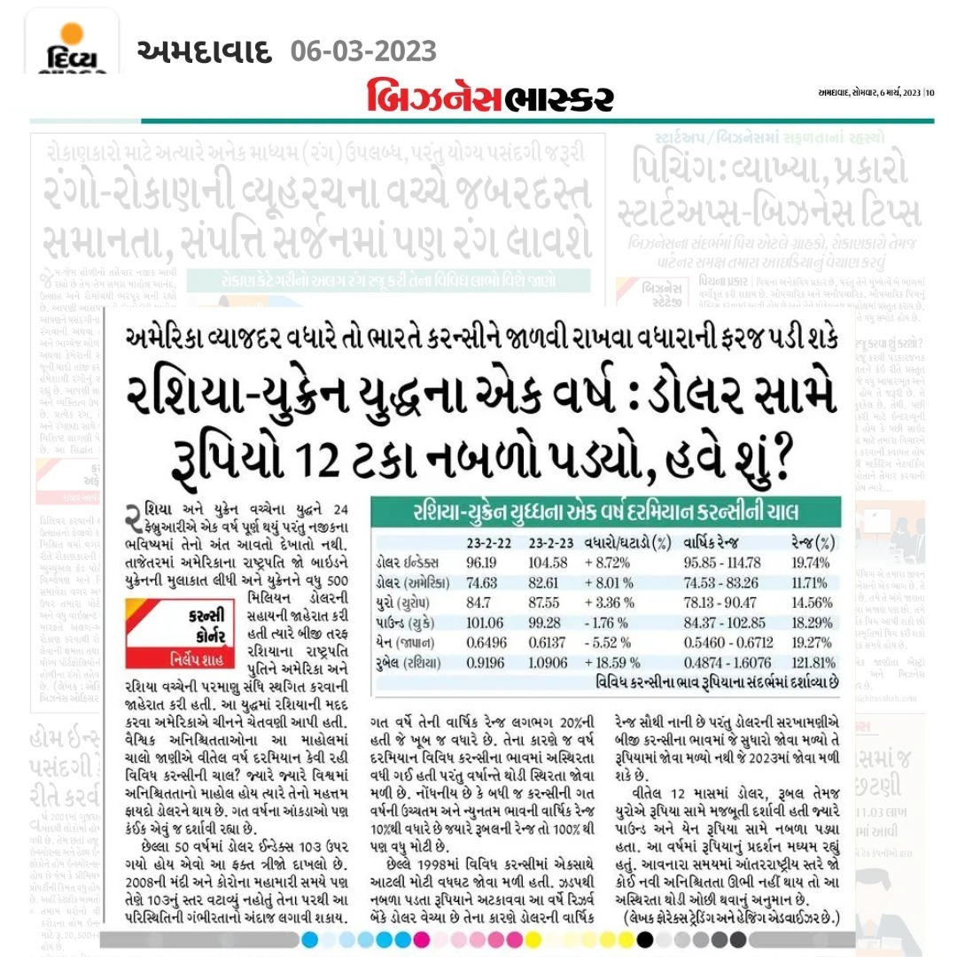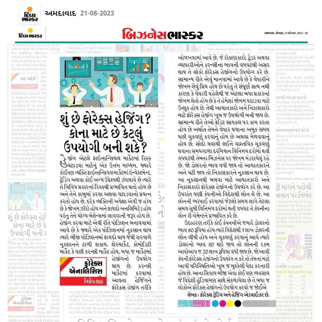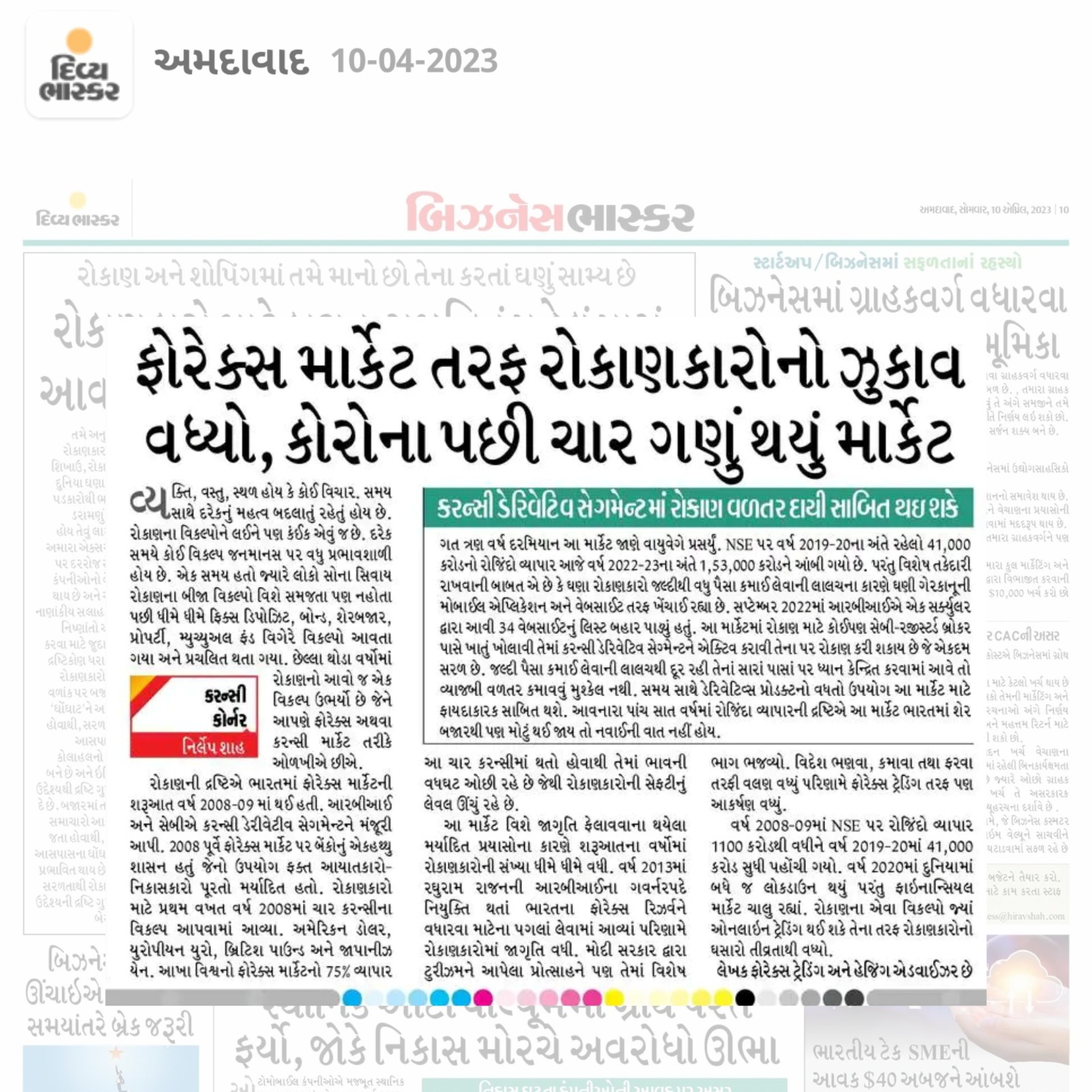 market. He is also the columnist of ‘Currency Corner by Nirlep Shah’ in the Divya Bhaskar