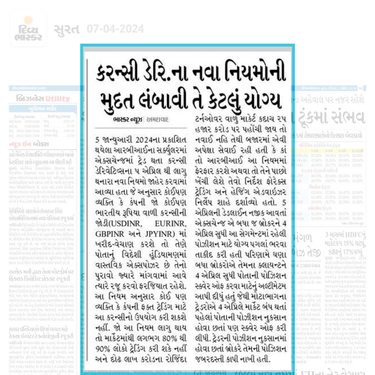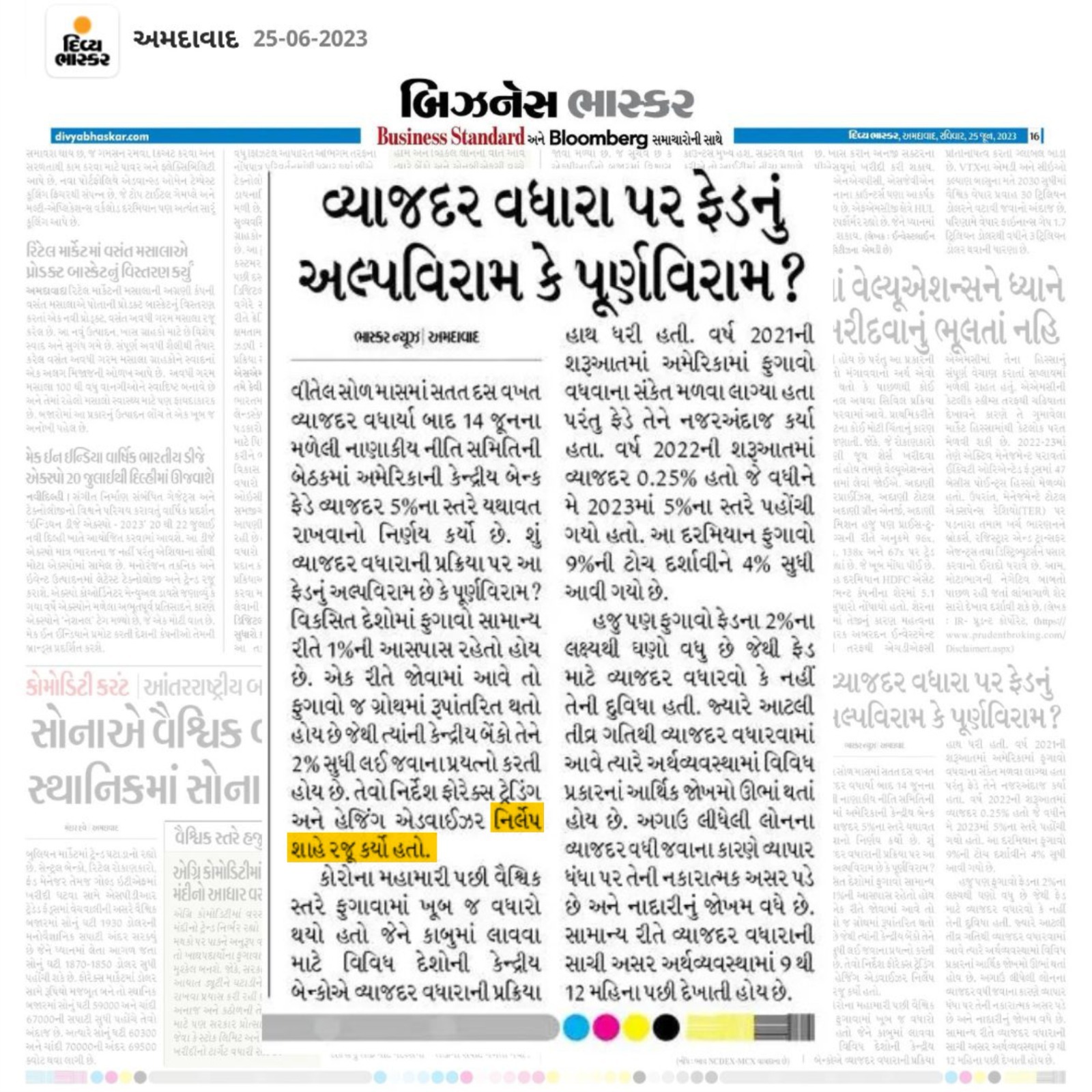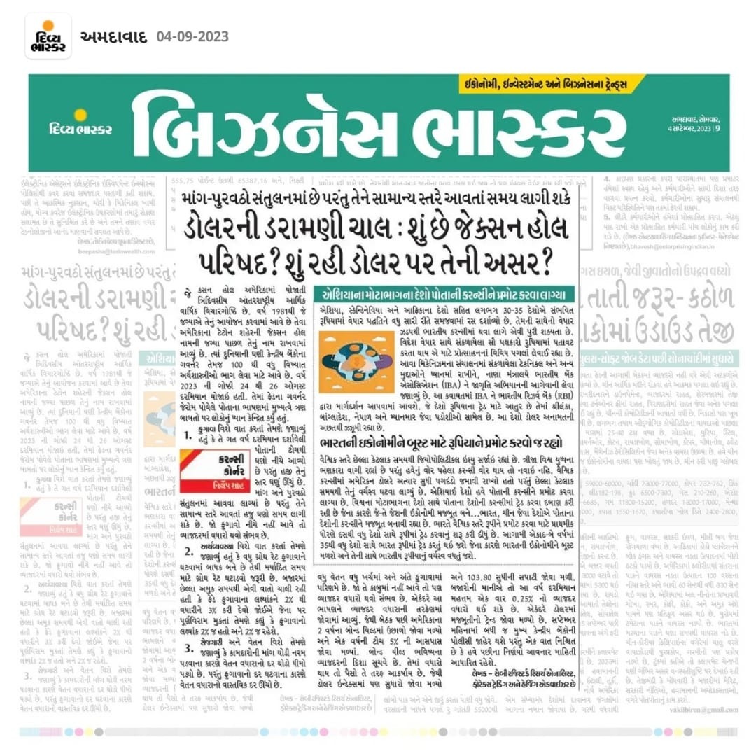 market. He is also the columnist of ‘Currency Corner by Nirlep Shah’ in the Divya Bhaskar